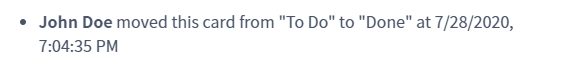 When an engineer moves a card, it will get logged, so you, as an administrator, can see who marked the task as done. This is important for making your internal quality better, you can see exactly what went wrong, so this can be prevented in the future.