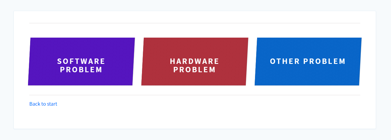 EasyCommands flows allow you to create questions for your employees. You can create cards, and when the employee clicks on one of the cards they are taken to the next page with new cards. This way you can create call scripts or tasks that every employee should do the same, like taking in hardware. You can set a card to be the final card, and have it show a message instead. This message can be something like template text for your employee to enter in some kind of CRM system.